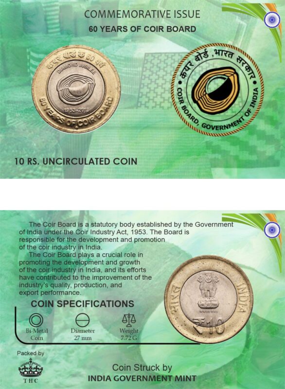 10 RUPEES ATM COIN CARD – 60 YEARS OF COIR BOARD