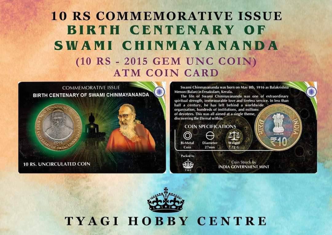 10 RUPEES ATM COIN CARD – BIRTH CENTENARY OF SWAMI CHINMAYANANDA