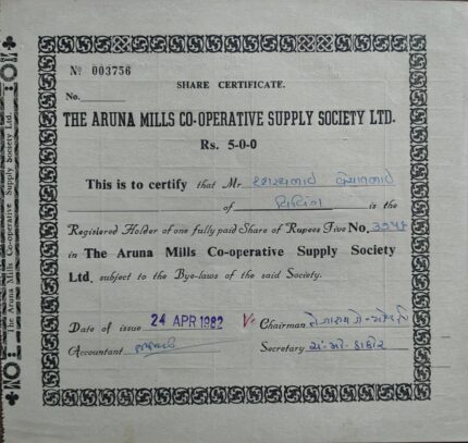THE ARUNA MILLS CO-OPERATIVE SUPPLY SOCIETY LTD