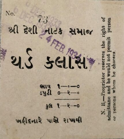 OLD GUJARATI DRAMA TICKET – 3RD CLASS