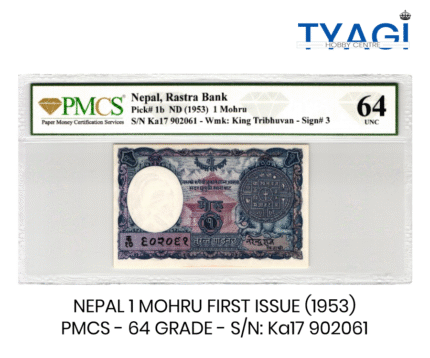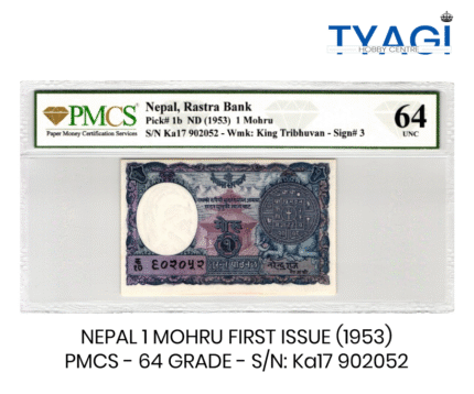 NEPAL 1 MOHRU FIRST ISSUE (1953) – PMCS 64 GRADE – S/N Ka17 902061