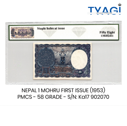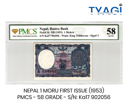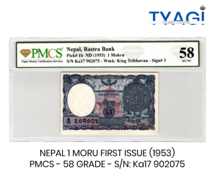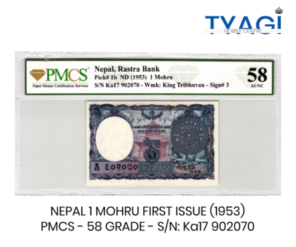 NEPAL 1 MOHRU FIRST ISSUE (1953) – PMCS 58 GRADE – S/N Ka17 902056