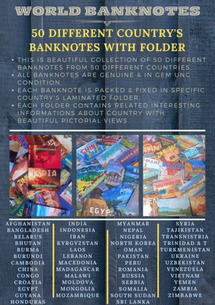 SET OF 50 DIFFERENT COUNTRY BANKNOTES WITH FOLDER