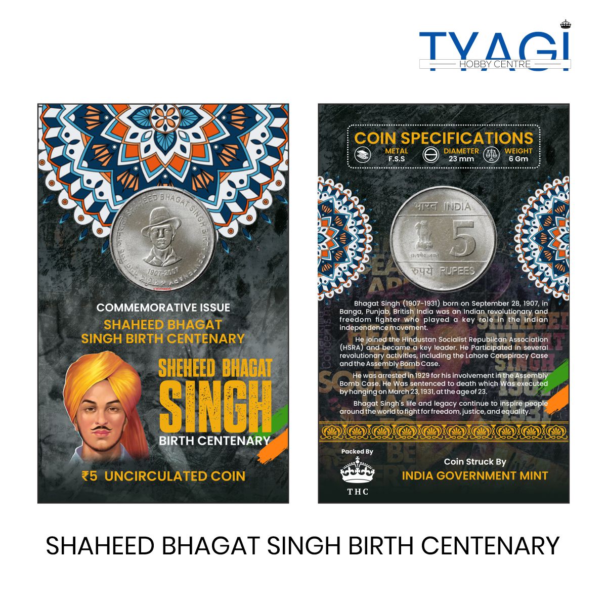 5 RUPEES ATM COIN CARD – SHAHEED BHAGAT SINGH BIRTH CENTENARY