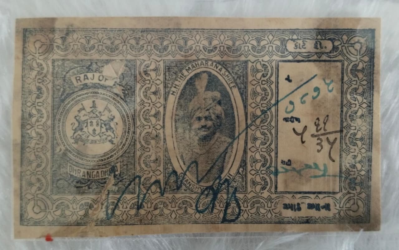 Under the British Raj, the colonial Eastern Kathiawar Agency was in charge of Dhrangadhra, which was a salute state entitled to a Hereditary salute of 13 guns. The state had a population of 100,000 in 1892 on 3,023 Square Kilometers km2. The privy purse was fixed at 380,000 Rupees when it ceased to exist by accession to recently independent India’s western state Saurashtra (now in Gujarat) on 15 February 1948.
