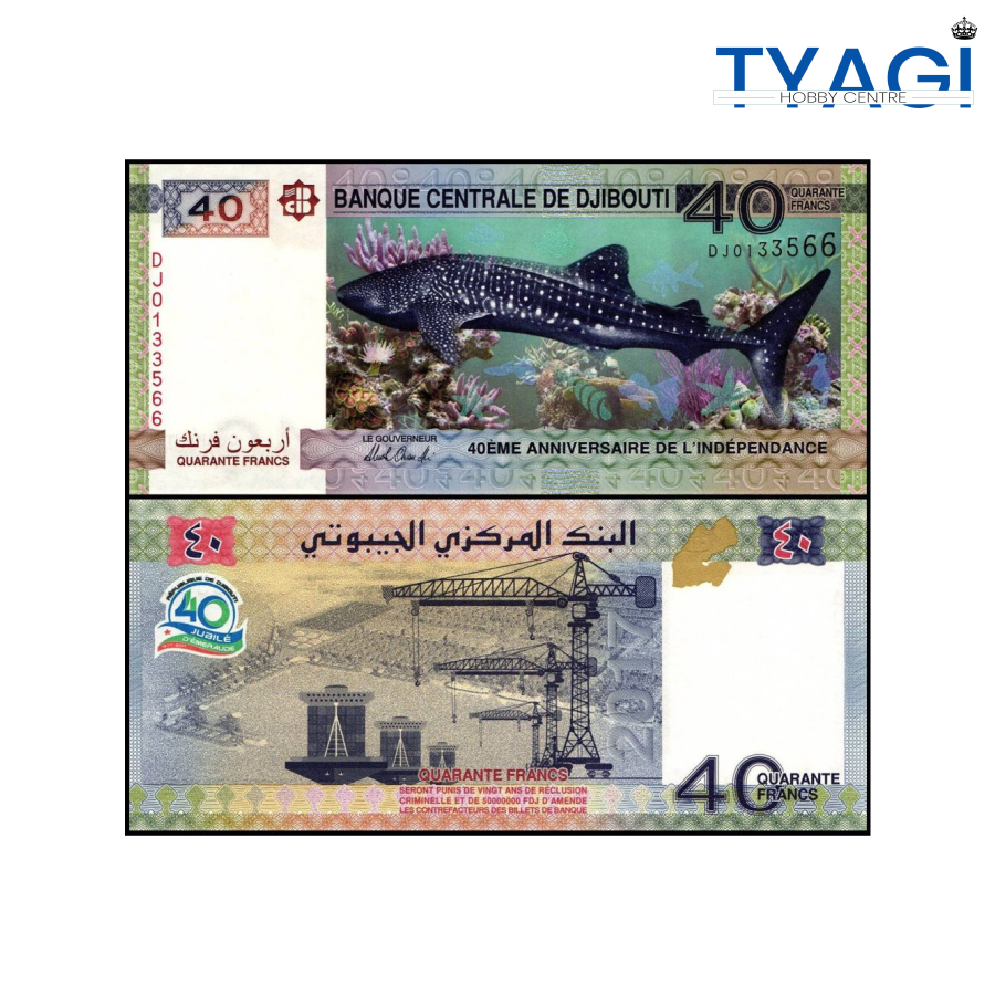 Djibouti 40 Francs banknote is in uncirculated (UNC) condition and features Whale shark.