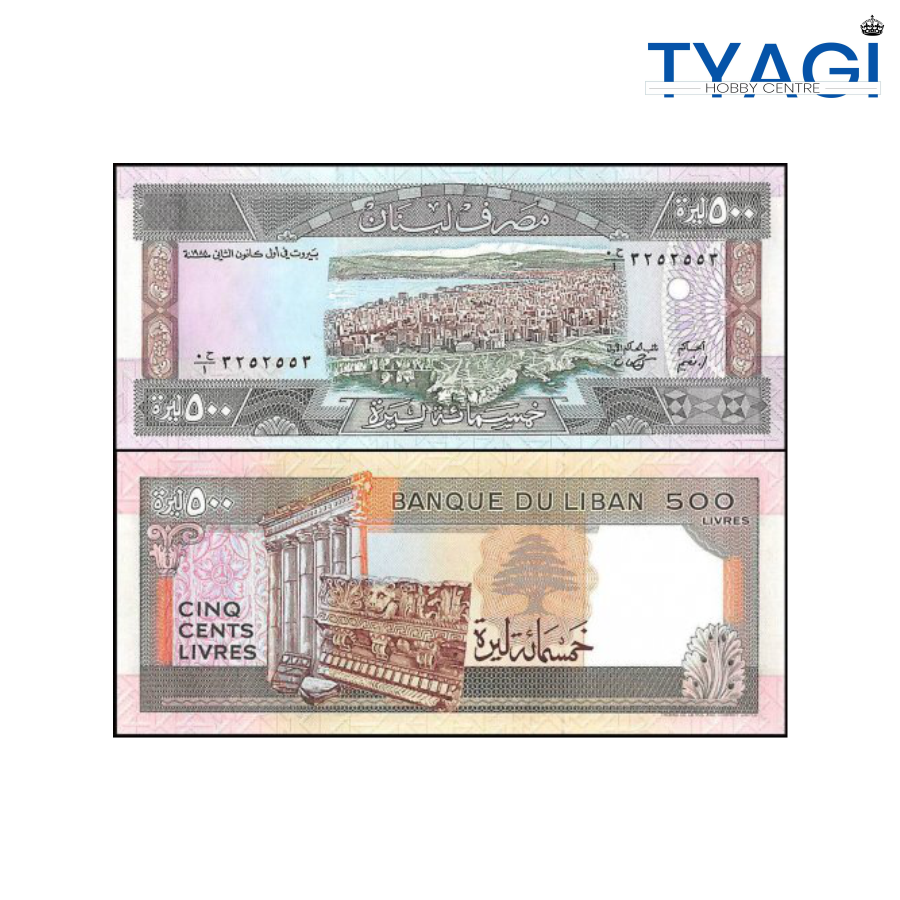 Lebanon 500 Livres banknote is in uncirculated (UNC) condition, and features the aerial view of Beirut.