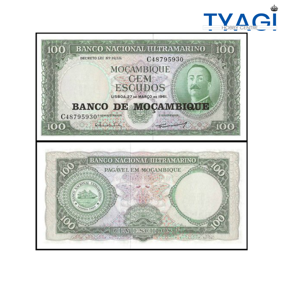 Mozambique 100 Escudos banknote is in uncirculated (UNC) condition and features Aires de Ornelas.