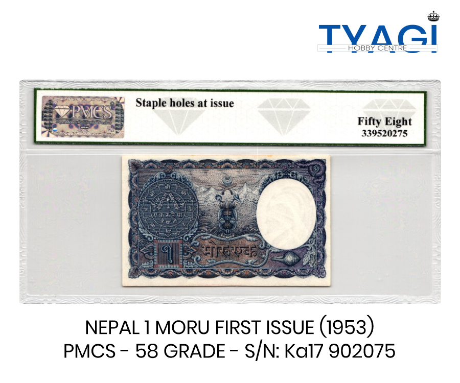 Be the first to review “NEPAL 1 MOHRU FIRST ISSUE (1953) – PMCS 58 GRADE – S/N Ka17 902075” Cancel reply