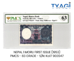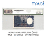 NEPAL 1 MOHRU FIRST ISSUE (1953) – PMCS 63 GRADE – S/N Ka17 902047