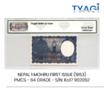 Be the first to review “NEPAL 1 MOHRU FIRST ISSUE (1953) – PMCS 64 GRADE – S/N Ka17 902052” Cancel reply