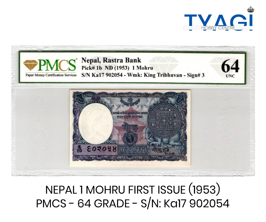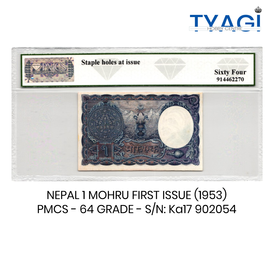 NEPAL 1 MOHRU FIRST ISSUE (1953) - PMCS 64 GRADE - S/N Ka17 902052 Original price was: ₹3,500.00.Current price is: ₹2,500.00.