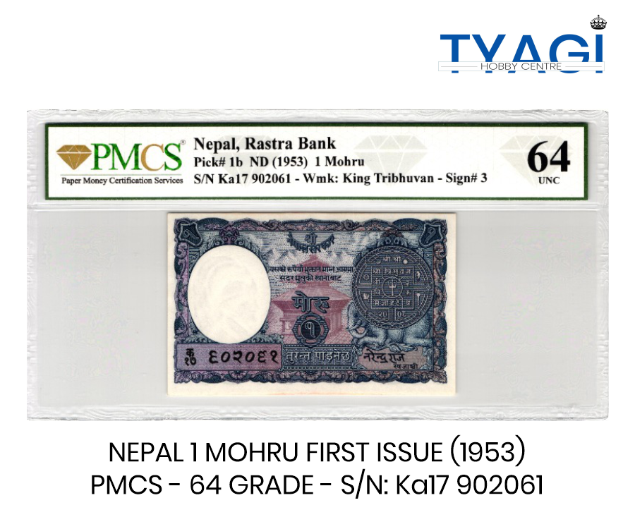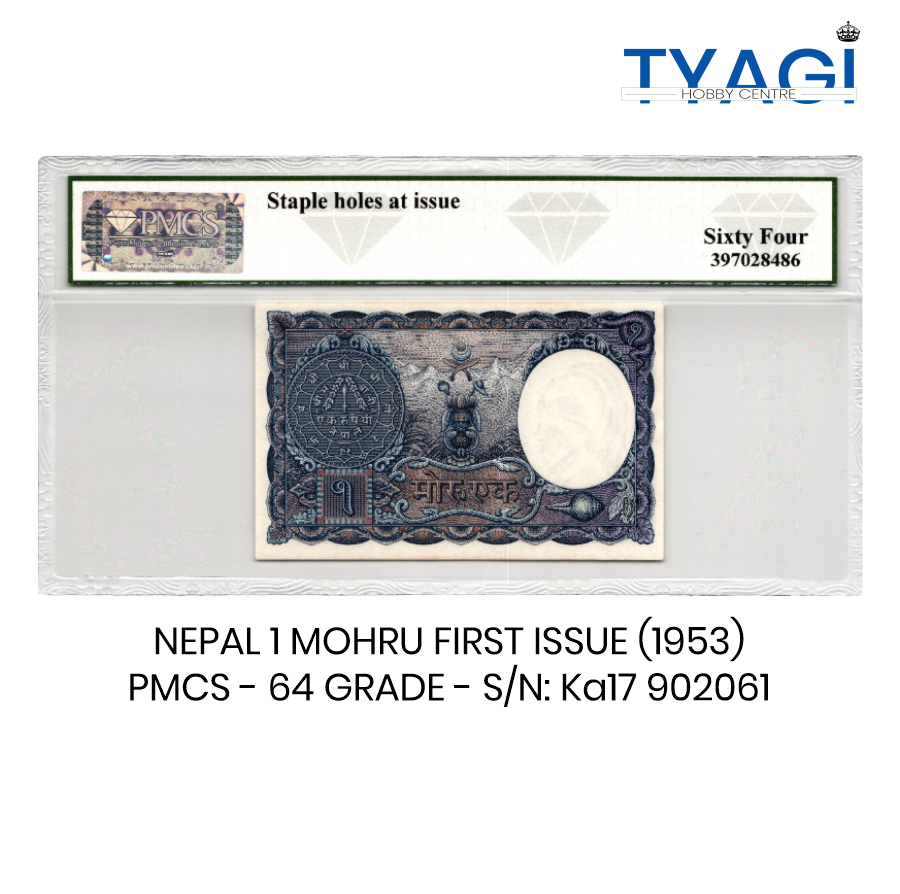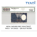 NEPAL 1 MOHRU FIRST ISSUE (1953) - PMCS 64 GRADE - S/N Ka17 902052 Original price was: ₹3,500.00.Current price is: ₹2,500.00.
