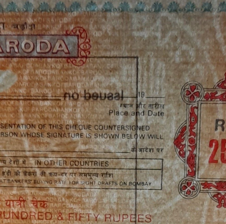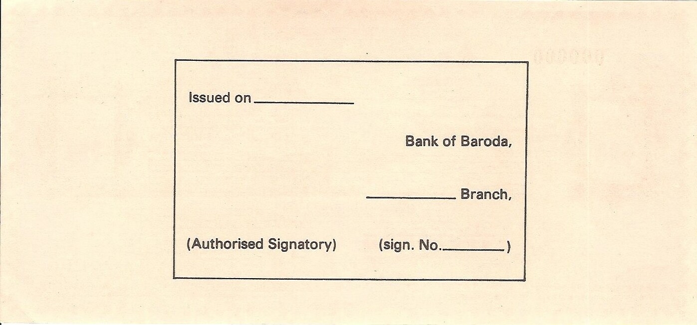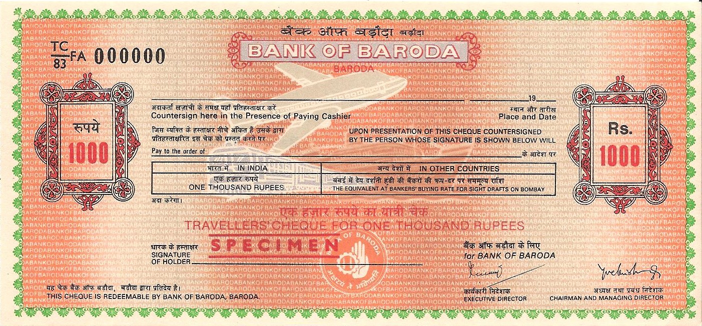 BANK OF BARODA – 1000 RS (SPECIMEN TRAVELLERS CHEQUE)