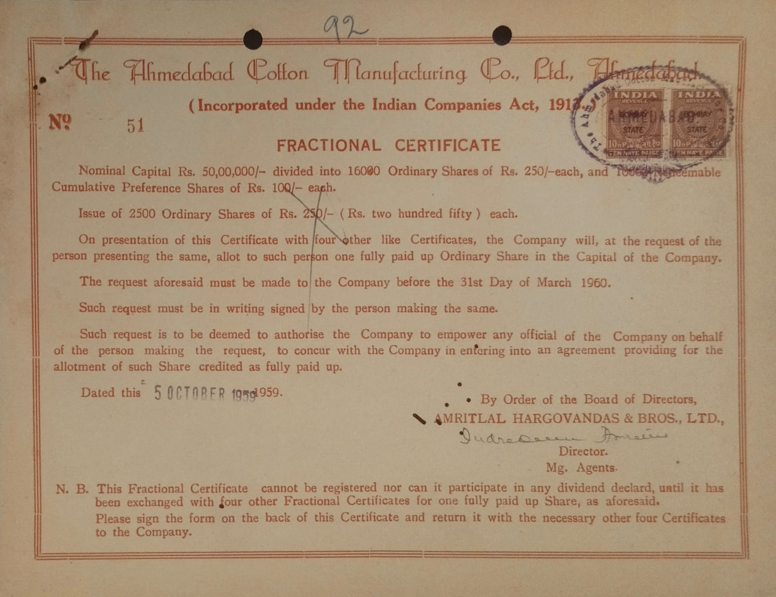 Category: SHARE CERTIFICATES