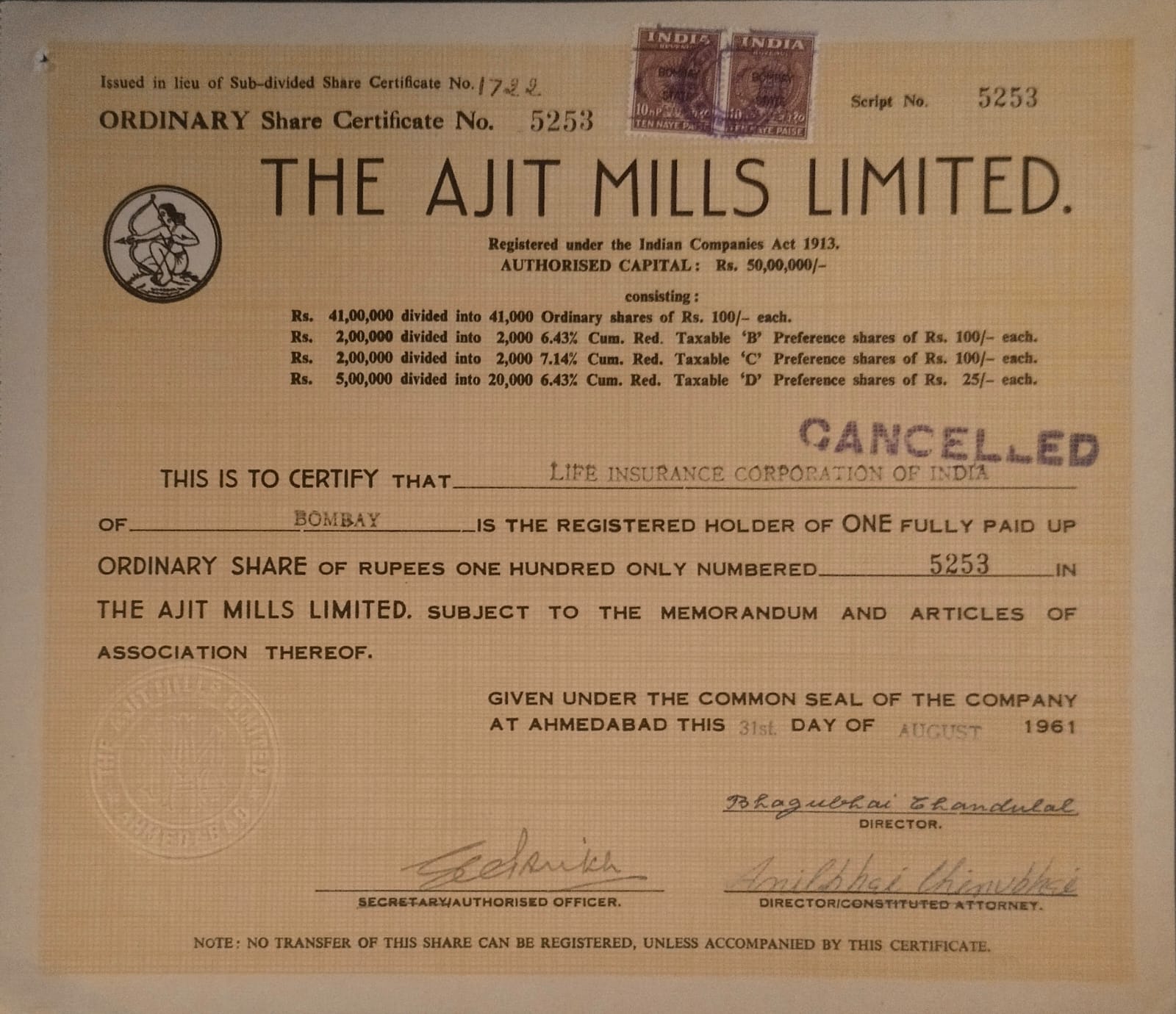 - INCORPORATED UNDER: THE INDIAN COMPANIES ACT 1913