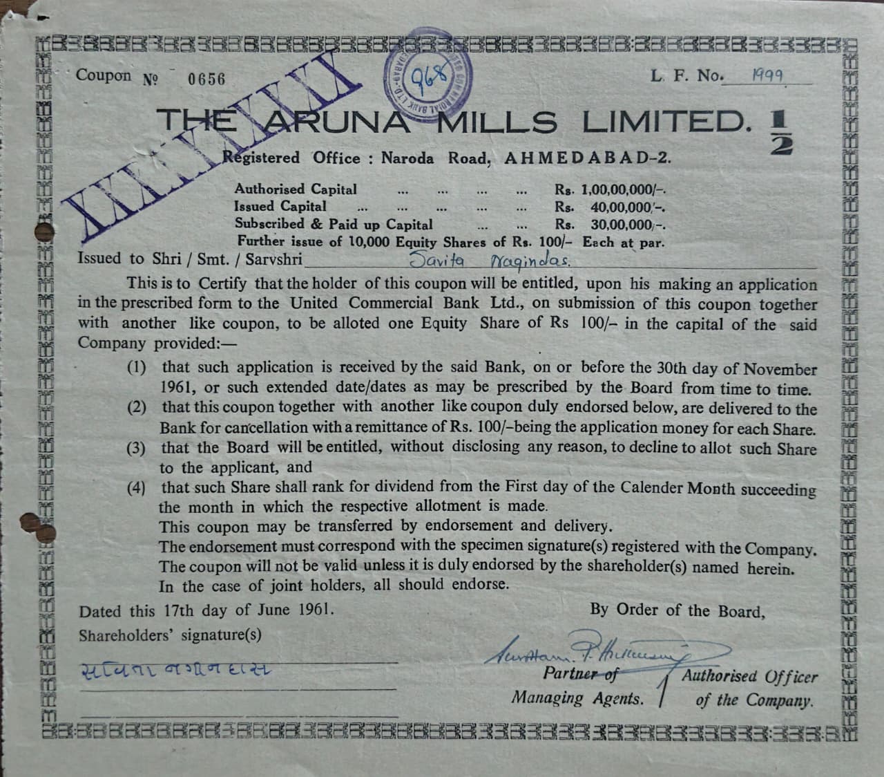 - COMPANY: THE ARUNA MILLS LIMITED