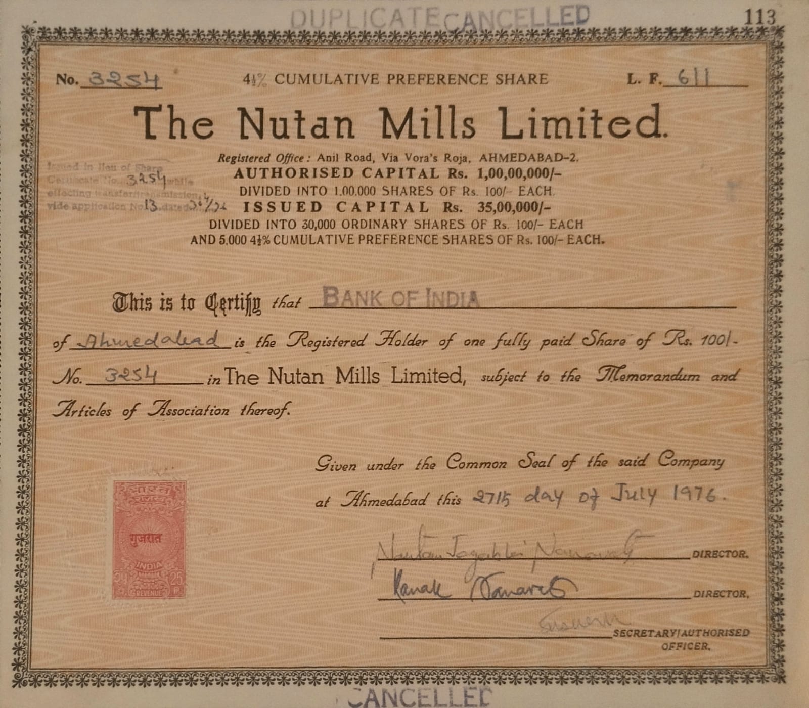 Category: SHARE CERTIFICATES